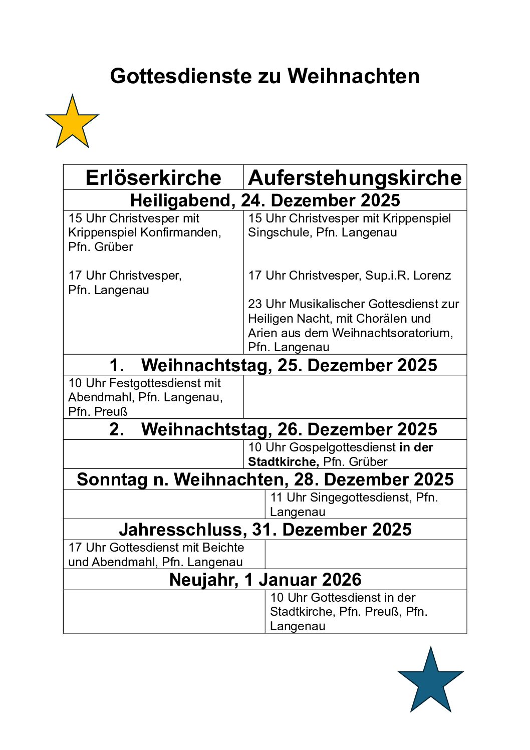 Weihnachtsgottesdienste 2025 auf einen Blick