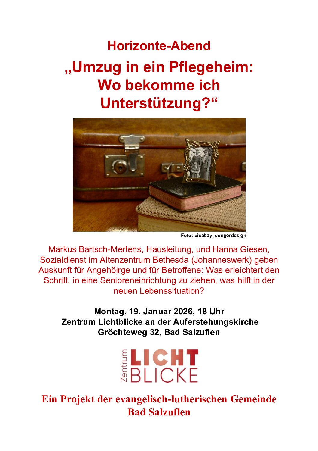 Montag, 17. März 2025, 18 Uhr, Zentrum Lichtblicke